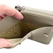 - ein separates, geteiltes Münzfach schließt mit Reißverschluss auf der Rückseite