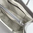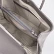 Der kleine Überschlag mit Magnet-Druckknopf verschließt die Tasche sicher und unterstreicht das klare, elegante Design. Silberfarbene Beschläge setzen moderne Akzente und harmonieren perfekt mit dem soften Taubengrau. Ein verstärkter Boden sowie silberfarbene Metallfüßchen sorgen für Stabilität und schützen das Leder beim Abstellen.