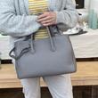 Die Farbe der Tasche ist ein dunkler schöner Grauton, er ist neutral und sehr vielseitig. Kann man sehr gut mit anderen Farben kombinieren.